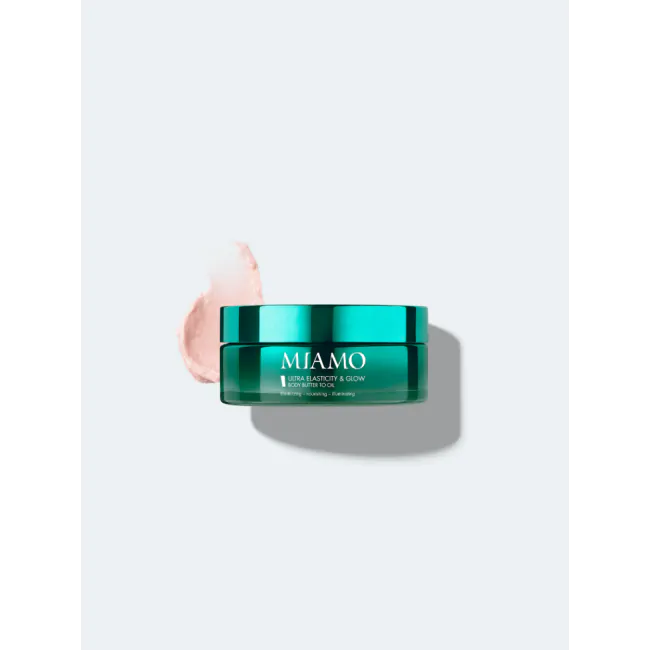 Miamo Ultra Elasticity and Glow Body butter to oil è un trattamento corpo intensivo che si trasforma da burro a olio setoso a contatto con la pelle, donando elasticità, nutrimento intenso e luminosità immediata.