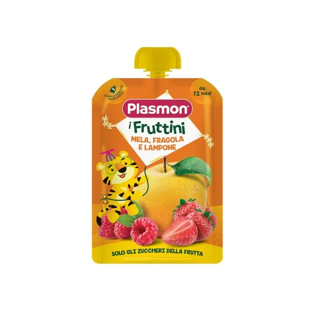 Dettagli Plasmon I Fruttini Mela Fragola e Lampone per bambini da 1 anno 130 g