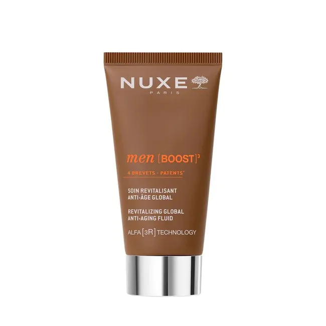 Nuxe Men Fluido Anti-Età è un trattamento quotidiano studiato per rivitalizzare, rigenerare e rinnovare la pelle maschile. Fa parte della linea Nuxe Men [BOOST]³, pensata per idratare, energizzare e proteggere la pelle dalle aggressioni esterne come vento, freddo e inquinamento.
