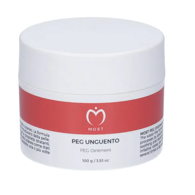Dai laboratori Most nasce Peg Unguento, un prodotto composto con PEG ad alta capacità d'assorbimento per l'acqua e gli essudati, non sono impermeabilizzanti, si asportano con l'acqua, non macerano la cute. Nello specifico i PEG contenuti in Most Peg Unguento sono composti atossici utilizzati anche per via endovenosa o in associazione con farmaci. Nello specifico, l'Allantoina è una sostanza naturale estratta primariamente dalla radice di Consolida (Symphytum officinale) della famiglia delle Borraginacee utilizzata fin dall'antichità per le sue proprietà antimicrobiche e cicatrizzanti.