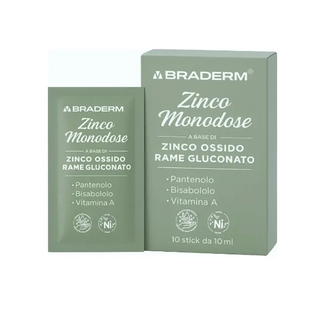 Dettagli Braderm Zinco Monodose crema all'ossido di zinco protettiva 10 stick da 10 ml