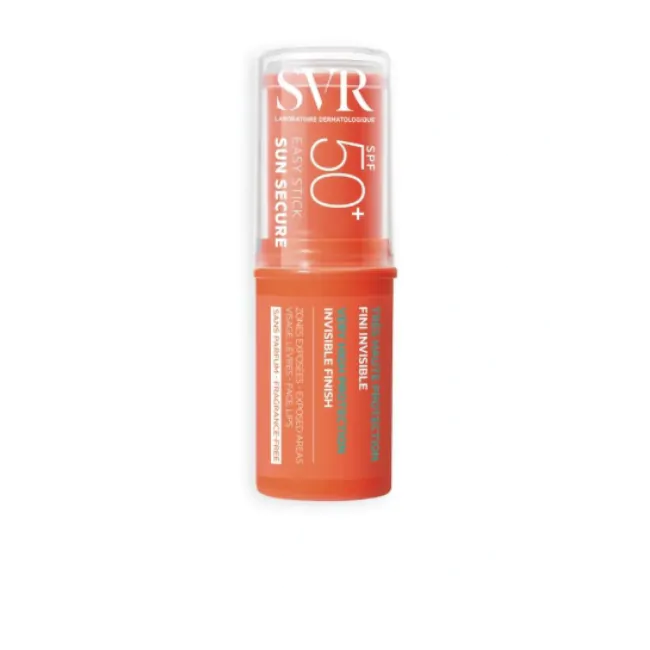 SVR Sun Secure Easy Stick SPF50+ è uno stick solare invisibile ad alta protezione UVB-UVA, ideale per zone sensibili e applicazioni rapide durante la giornata.