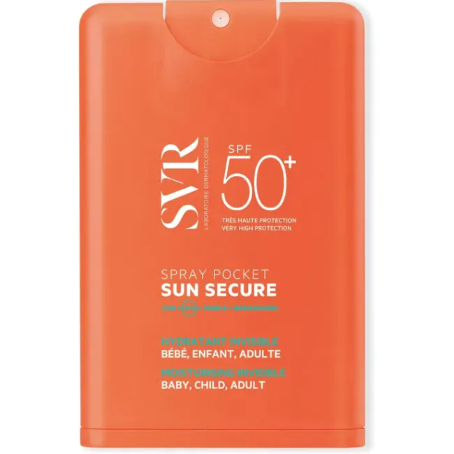 SVR Sun Secure Spray Pocket SPF50+ è un solare in formato tascabile, ideale per proteggere viso e corpo anche fuori casa. La texture è leggera, invisibile e si applica in pochi secondi, offrendo un’elevata protezione dai raggi UVB e UVA.