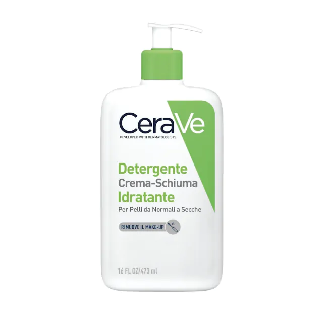 CeraVe Detergente Crema Schiuma Cream to foam è una crema schiumogena detergente idratante per pelli normali e secche. Deterge, idrata e rimuove il make up nel rispetto della barriera protettiva della pelle con 3 ceramidi essenziali, amminoacidi e acido ialuronico.
