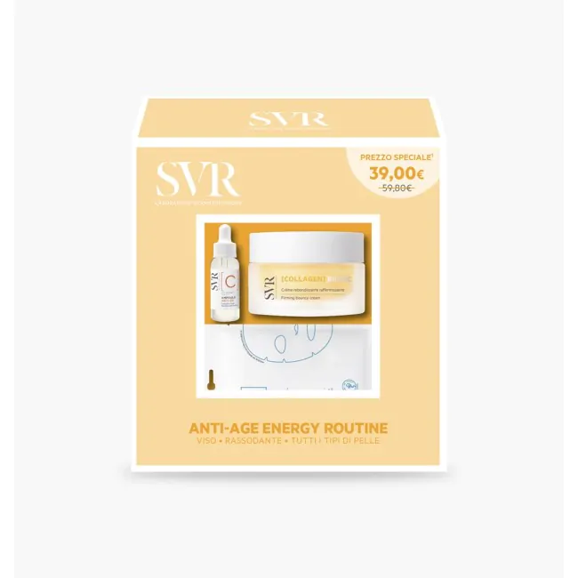 SVR Anti-Age Energy Routine è il cofanetto che contiene la routine viso completa per una pelle tonica, compatta e dall'incarnato uniforme. Contiene: