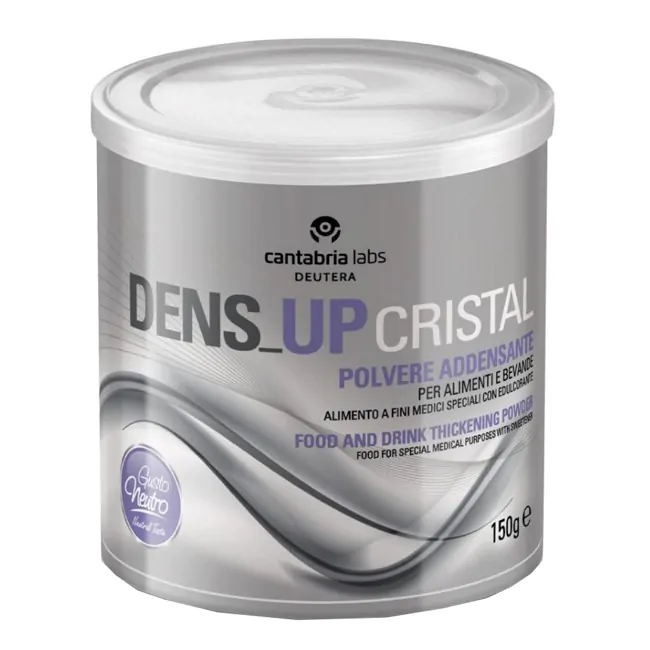 Polvere addensante per alimenti e bevande, indicata per la gestione dietetica di pazienti con difficoltà di deglutizione (disfagie) quando sono richieste diete a consistenza opportunamente modificata.