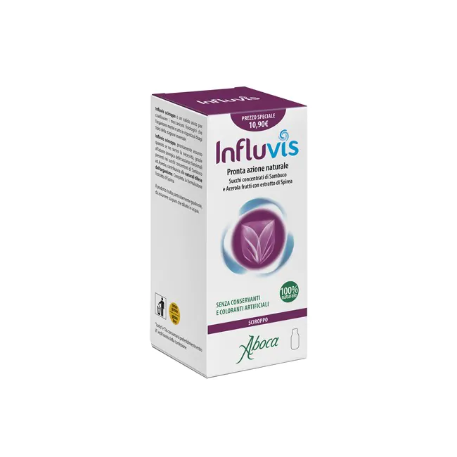 Influvis sciroppo, prontamente assunto quando se ne ravvisi la necessità, grazie all’azione sinergica delle sostanze funzionali presenti nei succhi concentrati di sambuco ed acerola, contribuisce alle naturali difese dell’organismo.