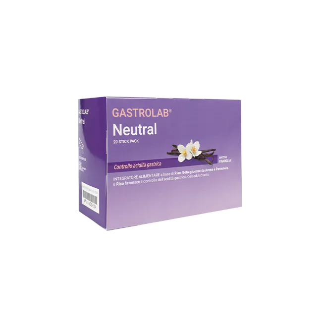 Gastrolab Neutral è un integratore alimentare progettato per il benessere digestivo grazie a una formula che combina beta-glucano da avena, riso semi polvere e pantenolo, con correttori di acidità e un aroma di vaniglia naturale.