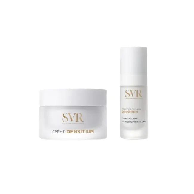 SVR Anti-Age Global Routine SVR è il cofanetto con azione ridensificante adatto per viso e occhi. L'azione ridensificante dei prodotti Densitium è data dall'azione di tre ingredienti principali: